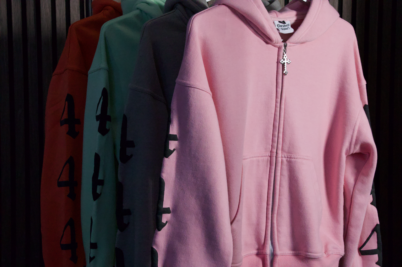 heavyweight. boxy. cropped fit. custom cross zipper. angel number sleeves. design.